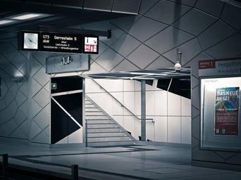 Keywords: metro railway station platform train architecture passengers subway modern stop rail traffic düsseldorf city urban