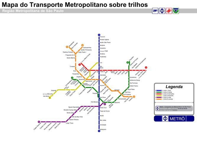 | Keywords: Metro sem cptm.png en A São Paulo Metro map excluding the CPTM lines and including the extensions for lines 2 and 5 and the new lines 4 and 6 pt Um mapa do Metrô de São Paulo excluindo as linhas da CPTM e incluindo as extensões para as linhas 2 e 5 e as novas linhas 4 e 6 own Eduardo Sellan III 22 de novembro de 2009 File MetroCPTM futuro png Esse mapa não é oficial foi editado por mim ultilizando programas com base na outra versão apresentada Public transport maps of São Paulo city | ||||