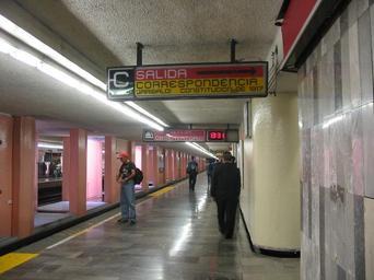 Keywords: MetroSaltodelAguaLine1Platform.JPG Line 1 Platform at Metro Salto del Agua in Mexico City Own 2008-03-20 Thelmadatter Salto del Agua station