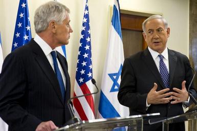 | Keywords: Metting before a wreath laying ceremony 140516-D-BW835-125.jpg en U S Secretary of Defense Chuck Hagel left makes a joint press statement with Israeli Prime Minister Benjamin Netanyahu in Jerusalem May 16 2014 Hagel met with Netanyahu to discuss issues of mutual importance before laying wreaths at the graves of Theodore Herzl and Prime Minister Yitzhak Rabin to commemorate Israeli Independence Day Unit Defense Imagery Management Operations Center DVIDS Tags U S flag; OSD; DIMOC; Chuck Hagel; DVIDS Bulk Import 2014-05-16 DoD photo by Erin A Kirk-Cuomo/Released https //www dvidshub net/image/1353499/metting-before-wreath-laying-ceremony 140516-D-BW835-125 2014-05-20 21 55 JERUSALEM IL PD-USGov Chuck Hagel Images from DoD uploaded by Fæ |