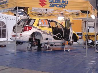 | Keywords: MEX 2008 RB 11 service 1.jpg Toni Gardemeister's Suzuki SX4 car being serviced prior to the start of the 2008 Rally Mexico at rally base in the Poliforum in Leon Mexico Own 2008-02-27 Joshbaumgartner 2008 Rally Mexico Suzuki SX4 WRC of Toni Gardemeister Suzuki World Rally Team Racing automobile roll cages World Rally Championship automobile maintenance |