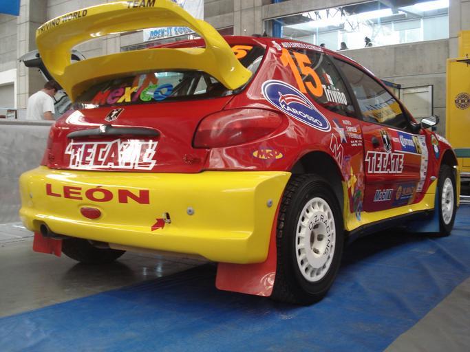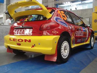 | Keywords: MEX 2008 RB 15 parked 1.jpg Ricardo Triviño's Peugeot 206 WRC car parked prior to the 2008 Rally Mexico at rally base in the Poliforum in Leon Mexico Own 2008-02-27 Joshbaumgartner Deminimis Logos from different companies on car All logos are copyrighted by their respective owners 2008 Rally Mexico Ricardo Triviño Peugeot 206 WRC Number 15 on rallying automobiles Racing automobile wings | ||||