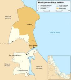 Keywords: Mexico Veracruz Boca de Rio comunities map.svg Mapa de las principales localidades del municipio de Boca del Río Veracruz México own Inkscape 2012-08-26 Battroid Maps of Veracruz