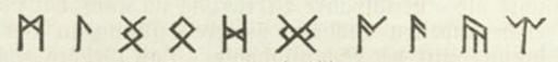 | Keywords: Meyers b14 s0036 b2c.jpg de 3 Teil “ Bildunterschrift Angelsächsische Runen nach der Inschrift des Kreuzes von Ruthwell Die hier fehlenden Zeichen durch eingeschlossen sind aus dem Alphabet des Runenliedes hinzugefĂĽgt Meyers b14 s0036 jpg ca 1885 author 150px thumb 1 Teil 150px thumb 2 Teil PD-Meyers Runic letters Images from Meyers Konversationslexikon 4th edition - text figures |