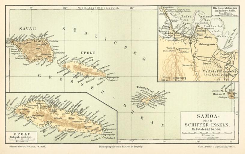 Keywords: Meyers b14 s0260a.jpg 14 0260 0261 260a a German map of Samoa c 1888 on page eine Karte von Samoa ca 1888 Seite 2010-10-27 Old maps of Samoa AAA Maps from Meyers Konversationslexikon 4th edition