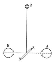 | Keywords: Meyers b2 s0083 b1.png de Augenspiegel von Helmholtz A Auge des Beobachters B beobachtetes Auge C Lichtflamme SS ebene Glasplatte Meyers b2 s0083 jpg ca 1885 author PD-Meyers Ophthalmic equipment History of ophthalmology Images from Meyers Konversationslexikon 4th edition - text figures |
