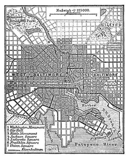| Keywords: Meyers b2 s0299 b1.png de Situationsplan von Baltimore 1 125 000 Meyers b2 s0299 jpg ca 1885 author PD-Meyers Old maps of Baltimore Maps of cities Meyers Konversationslexikon 4th edition Images from Meyers Konversationslexikon 4th edition - text figures 1885 maps Baltimore in the 1880s |