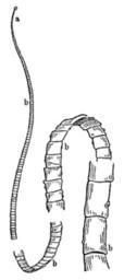 Keywords: Meyers b2 s0315 b1.png de Gewöhnlicher Bandwurm a “ žKopf b “ žGlieder Proglottiden Meyers b2 s0315 jpg ca 1885 author PD-Meyers Cestoda Images from Meyers Konversationslexikon 4th edition - text figures
