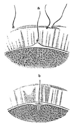| Keywords: Meyers b2 s0610 b1.png de Abschnitte des Eies eines Seesterns Asterias glacialis a “ Samenfaden in die Hüllzone des Eies eindringend b “ Samenfaden hindurchgedrungen Meyers b2 s0610 jpg ca 1885 author PD-Meyers Asterias Fertilization Images from Meyers Konversationslexikon 4th edition - text figures |