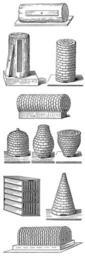 | Keywords: Meyers b2 s0908 b1.png de Bienenstöcke/-körbe von links nach rechts oben nach unten liegende Klotzbeute stehende Klotzbeute Walzenkorb Walze Stülpkorb Bauchstülper Traubenstülper Berlepsch ™ Ständerbeute Kegelstülper Torstock Meyers b2 s0908 jpg ca 1885 author PD-Meyers Illustrations of beehives Images from Meyers Konversationslexikon 4th edition - text figures |