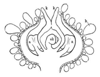 | Keywords: Meyers b3 s0069 b1.png de halbierte Blüte von Chenopodium a “ Staubgefäße k “ Pistill sk “ Samenknospe Meyers b3 s0069 jpg ca 1885 author PD-Meyers Chenopodium 19th-century flower diagrams Images from Meyers Konversationslexikon 4th edition - text figures Chenopodium - botanical illustrations |