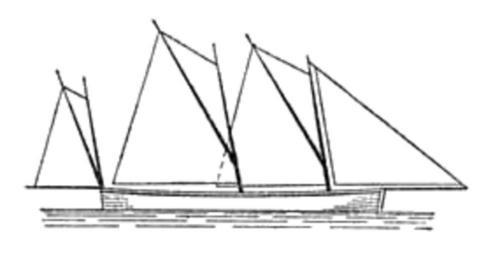 Keywords: Meyers b3 s0203 b5.png de Spriettakelung dreimastig Meyers b3 s0203 jpg ca 1885 author PD-Meyers Images from Meyers Konversationslexikon 4th edition - text figures Unidentified boats Lugsails Drawings of boats