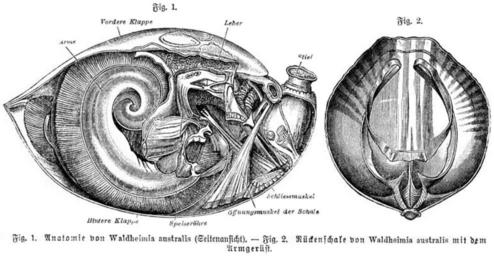 | Keywords: Meyers b3 s0297 Brachiopoda Waldheimia-australis.png de Anatomie von Waldheimia australis en Meyers Lexikon ” Vol 3 ” Page 297 ” Fig 1 2 Brachiopoda Waldheimia australis ca 1885 Meyers b3 s0297 jpg author <gallery> Brac articulate png </gallery> PD-Meyers Images from Meyers Konversationslexikon 4th edition - text figures Brachiopoda anatomy |