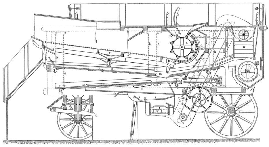Keywords: Meyers b5 s0140 b1.png de Kombinierte Dampfdreschmaschine Längsschnitt Meyers b5 s0140 jpg ca 1885 author PD-Meyers Images from Meyers Konversationslexikon 4th edition - text figures Threshing machines