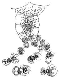 Keywords: Meyers b6 s0053 b1.png de Antheridium die Spermatozoiden entlassend Meyers b6 s0053 jpg ca 1885 author PD-Meyers Images from Meyers Konversationslexikon 4th edition - text figures Pteridophyta diagrams
