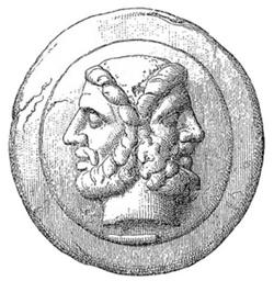 Keywords: Meyers b9 s0153 b1.png de Januskopf römischer As ca 1885 Meyers b9 s0153 jpg author PD-Meyers Ianus on coins As coin Images from Meyers Konversationslexikon 4th edition - text figures
