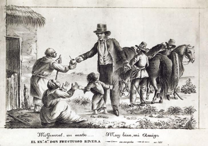 Keywords: Mi general un mate.jpg es Dibujo de Juan Manuel Besnes e Irigoyen en el que se retrata a Fructuoso Rivera recibiendo un mate de un paisano 1830 http //divisacolorada blogspot com/2010/04/fructuoso-rivera-caudillo-de-los html Juan Manuel Besnes e Irigoyen 1789 - 1865 PD-Old Uploaded with UploadWizard Fructuoso Rivera Juan Manuel Besnes e Irigoyen Mate in art People of Uruguay in art 1830 in Uruguay |