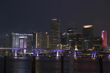 Keywords: miami night city florida skyline usa cityscape downtown architecture water reflection dusk urban ocean travel panoramic skyscraper tourism