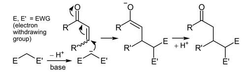 Keywords: Michael addition of active methylene.svg v Michael addition of active methylene compounds Source Selfmade Date 10 Jan 2007 Made with ChemDraw Author Su-no-G Michael addition