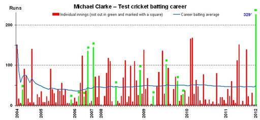 | Keywords: Michael Clarke batting v3.png test match performance of cricketer Michael Clarke and was created by en wiki w user EdChem Each bar indicates a single test match innings red ones for innings in which he was dismissed green ones for innings in which he batted but was not out The blue line shows career batting average as at the end of each innings 6 January 2012 The graph was generated with Microsoft Excel 2003 the resulting chart being copied to Adobe Photoshop 9 and saved in png format using data from w Cricinfo http //stats espncricinfo com/ci/engine/player/4578 html class 1;orderby start;template results;type batting;view innings and w Howstat http //www howstat com au/cricket/Statistics/Players/PlayerProgressBat asp PlayerID 3067 It was created as an alternative to w File Michael_Clarke_batting png and w File Michael_Clarke_batting_v2 png for discussion at w WT CRICKET; this version is current as at 5 January 2012 and includes Clarke's 329 high score completed on that date and was prepared on 6 January 2012 EdChem other versions w File Michael Clarke batting png w File Michael Clarke batting v2 png w File Michael Clarke batting v4 png EdChem wikipedia en Cc-zero Original upload log page en wikipedia Michael+Clarke+batting+v3 png wikitable - 2012-01-06 13 52 46 888× 410× EdChem This graph details the test match performance of cricketer Michael Clarke and was created by en wiki user EdChem Each bar indicates a single test match innings red ones for innings in which he was dism - Uncategorized 2016 July 24 |