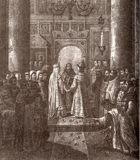 | Keywords: Michael I's wedding by B.Chorikov.jpg Чо иков Б Венчание ца я ихаила Федо овича с Евдокией Лукьяновой из ода Ст ешнёвых http //history sgu ru/ wid 1904 century 1800 Chorikov B PD-old Eudokia Streshneva Royal wedding celebrations in Russia Files uploaded by Shakko from various sources Boris Chorikov Michael I of Russia in engravings |