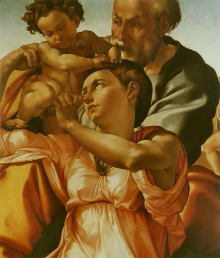 Keywords: Michel-Ange - Tondo Doni.jpg Doni Tondo Tondo Doni oil tempera panel diameter 120 cm diamètre 120 cm Florence Florence Uffizi Gallery Galerie des Offices Detail Détail Livre de Pierluigi De Vecchi Raphaël traduit de l'italien par Odile Menegaux et Paul Alexandre Paris Citadelles Mazenod 2002 Collection Les Phares 380 p ISBN 2850881139 1504-1505 Michelangelo Buonarroti Other versions <gallery> File Michelangelo_Buonarroti_-_Tondo_Doni_-_Google_Art_Project jpg Complete work File Michelangelo Buonarroti 047 jpg Different tones </gallery> Creator Michelangelo Buonarroti PD-old-100 Tondo Doni Taken with Panasonic Lumix DMC-TZ2 Details of paintings by Michelangelo |