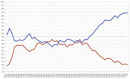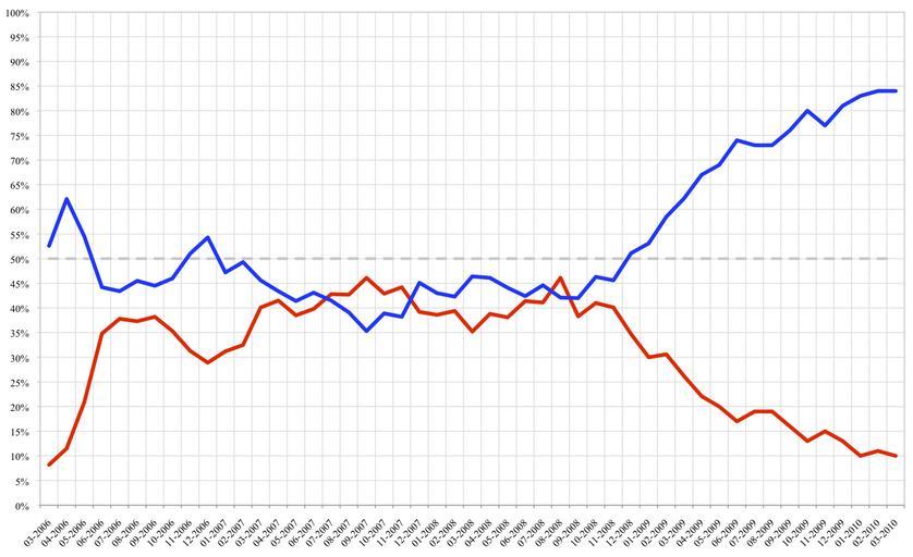 | Keywords: Michelle Bachelet approval ratings.png BLUE/AZUL Approval of Bachelet's leadership/Aprueba la conducción de Bachelet<br> RED/ROJO Disapproval/Desaprueba Data source http //www adimark cl Adimark 2006-12-07 own assumed Cantus Michelle Bachelet Approval ratings |