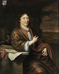 | Keywords: Michiel van Musscher - Portrait of Gerard Pietersz. Hulft - WGA16406.jpg Artwork 1677 Oil on canvas size cm 49 40 Private collection accession number object history credit line WGA link 16406 http //www wga hu/art/m/musscher/hulft_p jpg http //www wga hu/html/m/musscher/hulft_p html PD-old-100 painting portrait Dutch 1651-1700 Michiel van Musscher Pietersz Hulft 17th-century paintings in unidentified private collections Gerard Pietersz Hulft 1677 paintings WGA form painting WGA type portrait WGA School Dutch WGA time period 1651-1700 1670s paintings in private collections 17th-century men looking at viewer in art Brown clothing in art male Male long hair in art Pointing away from viewer in art 17th-century portraits with coat of arms Portraits of men with landscape 17th-century portrait paintings of men |