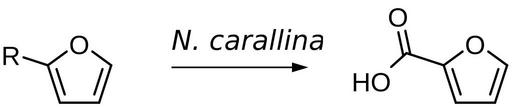 | Keywords: Microbial oxidation to produce 2-furoic acid.svg en Diagram showing the microbial oxidation of 2-furfuryl alcohol R CH<sub>2</sub>OH or 2-furfural R CHO to 2-furoic acid by Nocardia corallina Own 20 11 7 October 2016 UTC Ed Edgar181 Organic oxidations Furfuryl alcohol Furfural |