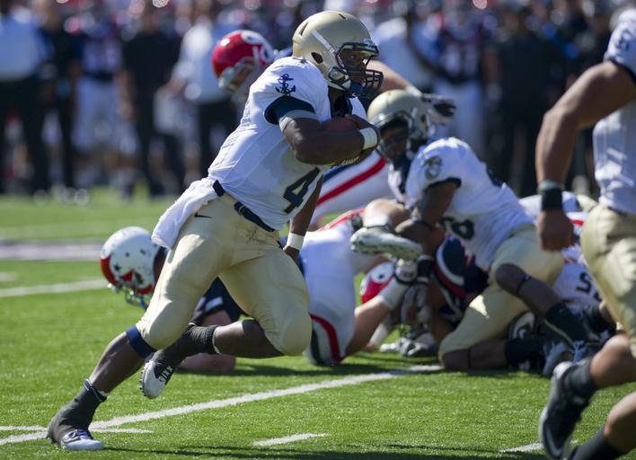 | Keywords: Midshipmen on offense at Navy at Air Force 2010-10-02 2.JPG U S Naval Academy Midshipmen Quarterback Ricky Dobbs runs the football versus the U S Air Force Academy Falcons in Colorado Springs Colo Oct 2 2010 The Falcons ended a seven year drought defeating the Midshipmen 14-6 http //www defense gov/PhotoEssays/PhotoEssaySS aspx ID 1890 2010-10-02 P01 Chad J McNeeley PD-USGov-Military-Navy <gallery> File US_Navy_101002-N-0696M-295_U S_Naval_Academy_Midshipmen_Quarterback_Ricky_Dobbs_runs_the_football_during_a_game_against_the_U S _Air_Force_Academy jpg Larger version </gallery> Files by User BrokenSphere 2010 Air Force Falcons football team 2010 Navy Midshipmen football team Ricky Dobbs in 2010 |