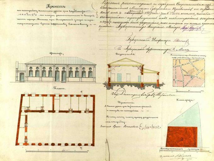 Keywords: Miensk, Navarakaŭskaja. Менск, Наваракаўская (1889).jpg енск Miensk вуліца ава акаўская vulica Navarakaŭskaja 17 Дом для жыдоўскіх вясельляў ГАБ author author PD-old Minsk in the 19th century