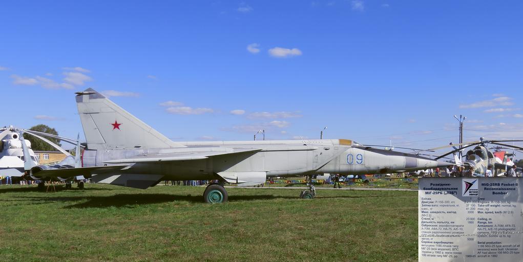 | Keywords: MiG-25RB Kiev2.jpg en Mikoyan-Gurevich MiG-25RB 'Foxbat-B' reconnaissance bomber at Ukrainian State Aviation Museum Kiev 2016-09-18 15 16 13 own Аимаина хика и other versions 50 407096 30 459395 cc-zero MiG-25RB at Ukraine State Aviation Museum |