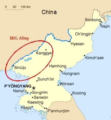 | Keywords: MiG Alley Map.JPG Das Gebiet an der chinesisch-nordkoreanischen Grenze das während des Koreakrieges 1950-53 als MiG Alley berühmt wurde The area called MiG Alley during the Korean War 1950-53 on the Chinese-North Korean border own based on https //www cia gov/library/publications/the-world-factbook/maps/maptemplate_kn html CIA Factbook map on North Korea 01 06 2006 Triggerhappy Chinese 50px Russian 50px badjpeg Maps of the Korean War Military aircraft in the Korean War | ||||