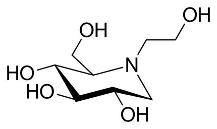 Keywords: Miglitol structure.svg en Miglitol; Glyset; Diastabol; Plumarol; Seibule; Glyset TN ; Bay-m-1099 own Yikrazuul 2010-09-12 Miglitol