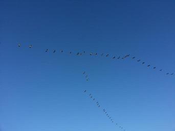 Keywords: migration birds migrating migratory flying flock flight fly geese sky blue formation migrate waterfowl fall