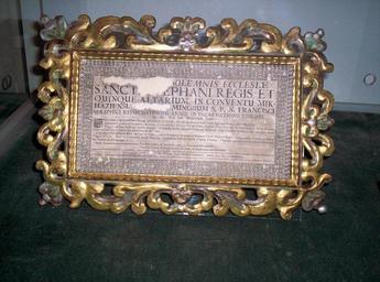Keywords: Mikházi templom 1692.jpg A mikházi Szent István király tiszteletére emelt ferences templom 1692 évi felszentelése alkalmából készített nyomtatvány A fémszinezett fakeret feltehetÅ‘en a nyomtatvánnyal azonos idÅ‘ben készült A templomot Jakub Franciszek Dluszki lengyel konventuális ferences és bákói püspök szentelte fel 1692 június 11-én Csíki Székely Múzeum Csíkszereda “ photo taken by uploader User Csanády in 2006 History of Transylvania Miercurea Ciuc 2007-03-15 own assumed Csanády