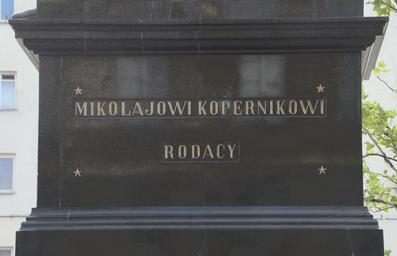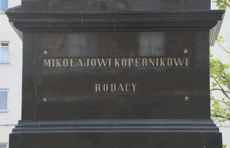 Keywords: Mikołajowi Kopernikowi Rodacy.jpg en Polish inscription self-made photograph Szczebrzeszynski 2010-08-20 Nicolaus Copernicus Monument in Warsaw