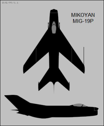 | Keywords: Mikoyan-Gurevich MiG-19P two-view silhouettes.png 2-view silhouettes of the Mikoyan-Gurevich MiG-19P http //www vectorsite net/Avmig15_3_04 png 2011-01-18 Greg Goebel VectorSite images by Greg Goebel are In The Public Domain Greg Goebel Silhouette drawings of aircraft MiG-19 drawings Images by Greg Goebel Mikoyan-Gurevich MiG-19P |