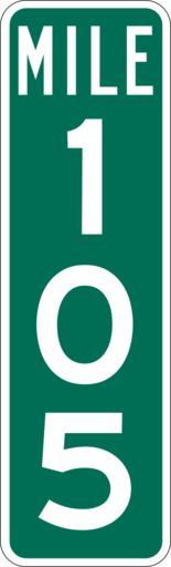 | Keywords: Mile Marker 105.svg PD MUTCD Rfc1394 457 1676 18 60 triple digit mile marker D10-3 Made using Viridian SVG Batcher this file was fabricated by a program 2009-03-05 Paul Robinson Rfc1394 Own work all rights released Public domain D10-3 - Distance Signs-3 Digit |