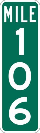 | Keywords: Mile Marker 106.svg PD MUTCD Rfc1394 457 1676 18 60 triple digit mile marker D10-3 Made using Viridian SVG Batcher this file was fabricated by a program 2009-03-05 Paul Robinson Rfc1394 Own work all rights released Public domain D10-3 - Distance Signs-3 Digit |