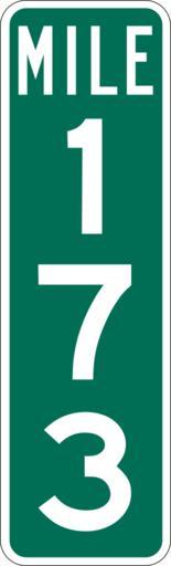 | Keywords: Mile Marker 173.svg PD MUTCD Rfc1394 457 1676 18 60 triple digit mile marker D10-3 Made using Viridian SVG Batcher this file was fabricated by a program 2009-03-05 Paul Robinson Rfc1394 Own work all rights released Public domain D10-3 - Distance Signs-3 Digit |
