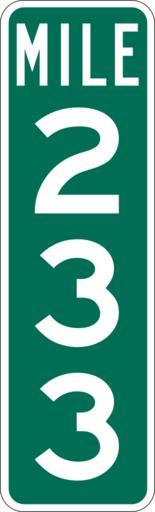 | Keywords: Mile Marker 233.svg PD MUTCD Rfc1394 457 1676 18 60 triple digit mile marker D10-3 Made using Viridian SVG Batcher this file was fabricated by a program 2009-03-05 Paul Robinson Rfc1394 Own work all rights released Public domain D10-3 - Distance Signs-3 Digit |