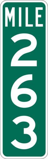 | Keywords: Mile Marker 263.svg PD MUTCD Rfc1394 457 1676 18 60 triple digit mile marker D10-3 Made using Viridian SVG Batcher this file was fabricated by a program 2009-03-05 Paul Robinson Rfc1394 Own work all rights released Public domain D10-3 - Distance Signs-3 Digit |