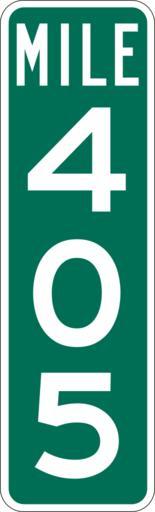 | Keywords: Mile Marker 405.svg PD MUTCD Rfc1394 457 1676 18 60 triple digit mile marker D10-3 Made using Viridian SVG Batcher this file was fabricated by a program 2009-03-05 Paul Robinson Rfc1394 Own work all rights released Public domain D10-3 - Distance Signs-3 Digit |