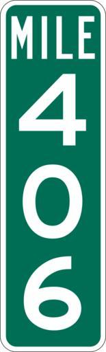| Keywords: Mile Marker 406.svg PD MUTCD Rfc1394 457 1676 18 60 triple digit mile marker D10-3 Made using Viridian SVG Batcher this file was fabricated by a program 2009-03-05 Paul Robinson Rfc1394 Own work all rights released Public domain D10-3 - Distance Signs-3 Digit |