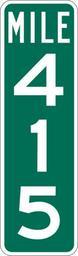 | Keywords: Mile Marker 415.svg PD MUTCD Rfc1394 457 1676 18 60 triple digit mile marker D10-3 Made using Viridian SVG Batcher this file was fabricated by a program 2009-03-05 Paul Robinson Rfc1394 Own work all rights released Public domain D10-3 - Distance Signs-3 Digit |