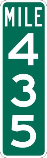 MAKE A MEME View Large Image Mile Marker 435.svg PD MUTCD Rfc1394 457 1676 18 60 triple digit mile marker D10-3 Made using Viridian SVG Batcher this file was fabricated by a program 2009-03-05 Paul Robinson Rfc1394 Own work all rights released Public domain D10-3 - ...