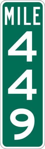 | Keywords: Mile Marker 449.svg PD MUTCD Rfc1394 457 1676 18 60 triple digit mile marker D10-3 Made using Viridian SVG Batcher this file was fabricated by a program 2009-03-05 Paul Robinson Rfc1394 Own work all rights released Public domain D10-3 - Distance Signs-3 Digit |