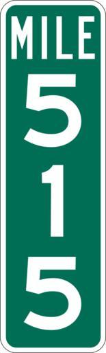 Keywords: Mile Marker 515.svg PD MUTCD Rfc1394 457 1676 18 60 triple digit mile marker D10-3 Made using Viridian SVG Batcher this file was fabricated by a program 2009-03-05 Paul Robinson Rfc1394 Own work all rights released Public domain D10-3 - Distance Signs-3 Digit |