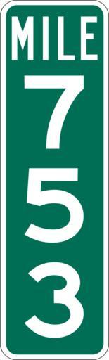 | Keywords: Mile Marker 753.svg  PD MUTCD Rfc1394 457 1676 18 60 triple digit mile marker D10-3 Made using Viridian SVG Batcher this file was fabricated by a program 2009-03-05 Paul Robinson Rfc1394 Own work all rights released Public domain D10-3 - Distance Signs-3 Digit |
